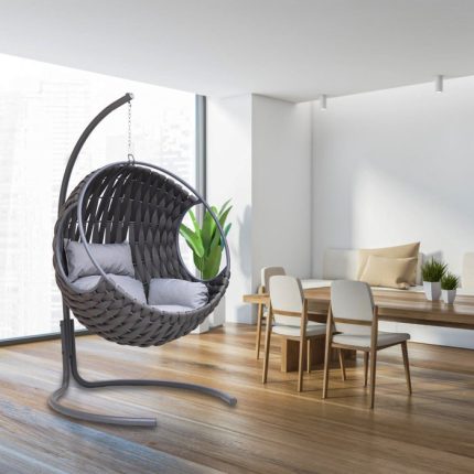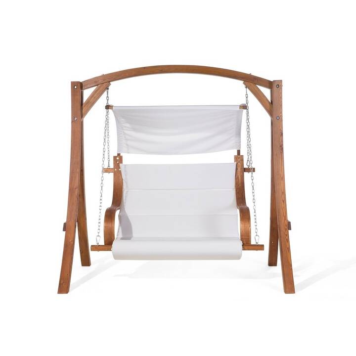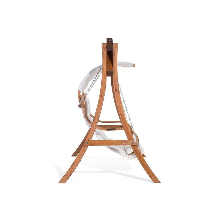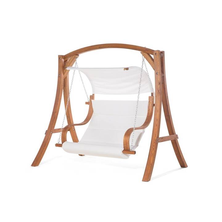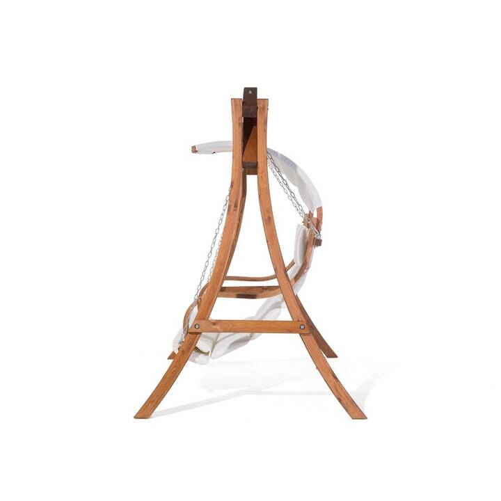 Une balancelle sera l’élément idéal pour votre coin jardin ! Cette balancelle solide en forme courbée, avec une structure en bois de mélèze, est résistante aux intempéries. L’assise souple de couleur beige, est en tissu polyester, durable et confortable. Une coque parasolaire est également en tissu polyester, il vous protègera des rayons UV. Il peut être enlevé et nettoyé en machine avec un programme à 40°C. La forme incurvée de la structure jusqu’à sa base permet à la balancelle d’être stable et antidérapante. Les chaînes et les mousquetons sont en acier massif, donc aucun risque de vous retrouvez au sol. Construisez votre petit coin de jardin .