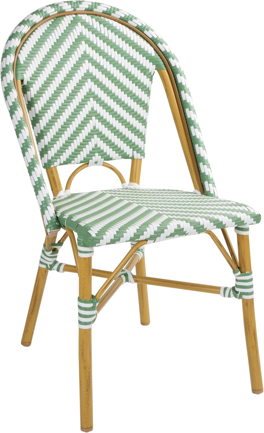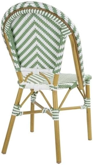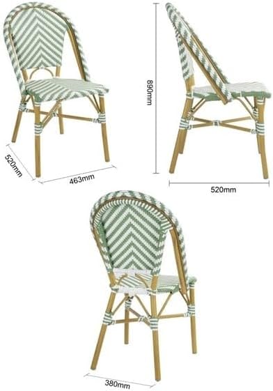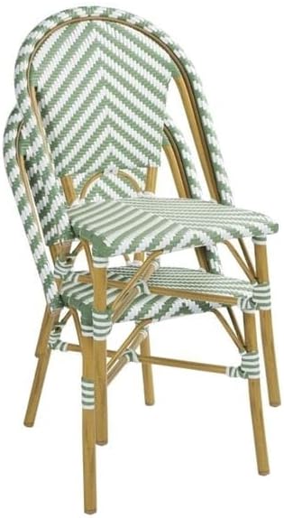 CHAISE BISTROT CROSS Style Parisien en Rotin – Vert Clair & Blanc – Aluminium & Rotin Synthétique – Empilable, Déjà Montée – Utilisation Intérieure & Extérieure