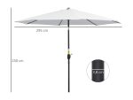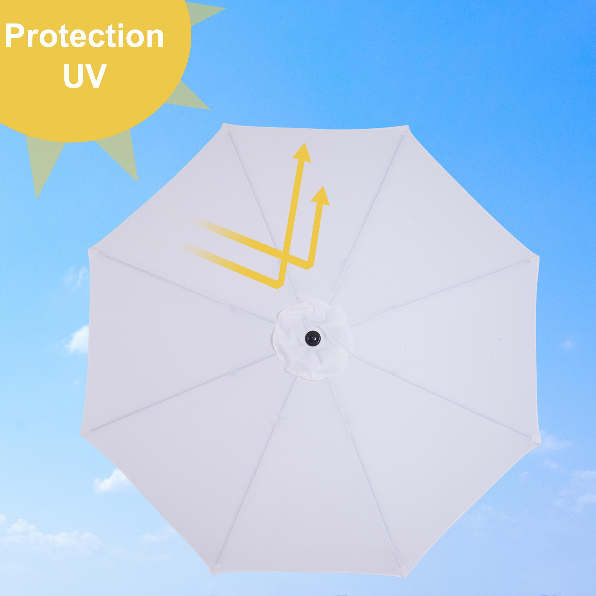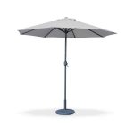 PARASOL CENTRAL LED , de forme octogonale (ø270cm), est l’accessoire indispensable de votre jardin ou votre terrasse, pour parer efficacement au soleil ou aux petites averses, mais il sera aussi le compagnon idéal de vos soirées, grâce à son système d’éclairage à LED !Il se manipule facilement grâce à sa manivelle anti-retour. Tous les parasols de notre collection possèdent un auvent sur le sommet, ce qui permet à l’air de circuler, et, en cas de légère brise, de ne pas prendre le vent. La structure verticale de ces parasols est entièrement fabriquée en aluminium, afin de vous promettre une durabilité dans le temps, et une résistance maximale aux conditions extérieures. La toile en polyester a été sélectionnée pour sa densité de 200g / m², garantissant un ombrage efficace, filtrant les rayons du soleil. Le tissu est enduit d’un produit hydrofuge, rendant la toile déperlante au contact de l’eau. Le système LED est parfaitement intégré au parasol, aucun fil apparent; tout le circuit est soigneusement camouflé dans les différents éléments composant le parasol. Le module de la manivelle dispose d’un compartiment pour y loger les piles (non fournies), et de l’interrupteur pour allumer ou éteindre le système d’éclairage. Son mât pourra être inséré dans n’importe quel pied compatible avec les mâts de 38mm de diamètre. Coloris toile : Gris clair Les + de notre produit :- Système d’éclairage LED,- Mât robuste en aluminium, recouvert de peinture anthracite,- Manivelle d’ouverture, anti retour. Spécifications techniques :Toile de 266cm de diamètre, environ 8,5m²Tissu polyester de 200 gr/m2 env. avec aération au sommet L’armature est en aluminium et les 8 baleines sont en acier recouvert de peinture époxy. Dimensions du mât : Ø38mm (Alu : 1mm d’épaisseur)Coloris structure : Gris anthracite Coloris toile : Gris clair Nombre de LED : 24 (3 par baleine)Alimentation : 3 piles AA (LR6, 1,5V), non incluses Hauteur du parasol : 2m40 (2m05 au point le plus bas)Poids : 6,8 kg1 Colis : 140x16x16 (7kgs)Informations complémentaires :Attention, le pied nécessaire pour lester le parasol n’est pas fourni. Vous pourrez trouver également des lests prévus pour mâts de 38mm, dans les grandes surfaces de bricolage.